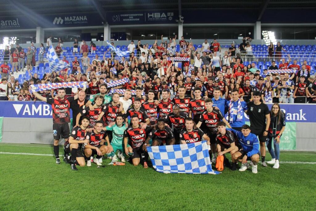 SD Huesca B: Nico Azagra; Guille Lobato, Moha Saadouni, Diego Almeida, Ale Calvo, Raúl Ojeda, Diego Hernández, Lucas Sauvage, Marc Aznar, Hussain Al Taha y Abel Seral. Suplents: Jaime Gracia, Toni de la Fuente, Izan Ruiz, Tumani Fofana, Juan Aguilar, Nacho Plaza, Eloy Gil i Pablo Osan.