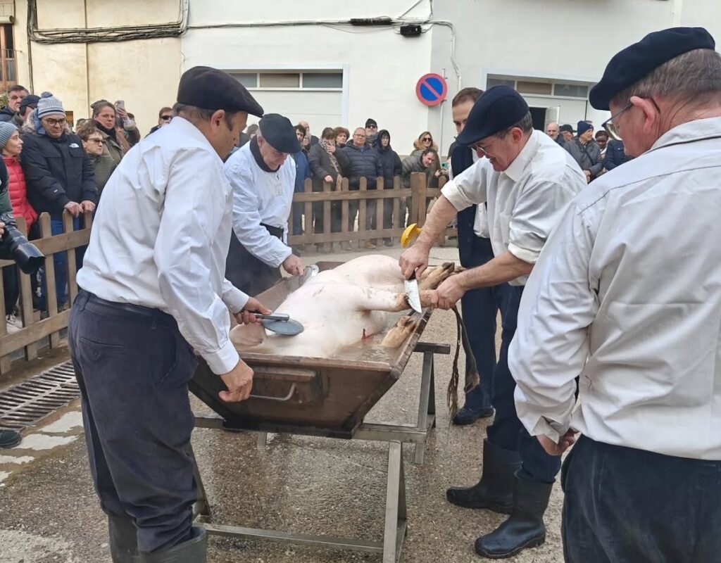 La Festa va començar a les 08:00 amb el llançament del primer coet i el repartiment de xocolate desfet amb magdalenes, encara que la Penya Lo Magré, organitzadora de l’acte, i els seus més de 100 col·laboradors ja havien començat dies abans a preparar l’esdeveniment que fa 25 anys va ser declarat festa d’interès turístic per part de l’executiu aragonès. Amb la xocolata, els més matiners han escalfat motors per a viure el tradicional repartiment de carn a la brasa i passejar pel mercat artesanal, enguany amb més de 80 parades. A les 10:30, els escorxadors van començar a esbocinar la cansalada davant l’atenta mirada del públic que no va voldre perdre detall del procés ni de les explicacions d’Ángel Sin.