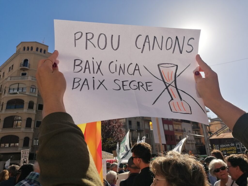 Més de 1.500 persones van participar este diumenge en la manifestació organitzada per la plataforma Pobles Vius a Lleida, per protestar contra els macroprojectes energètics que posen en perill les comarques de Ponent.